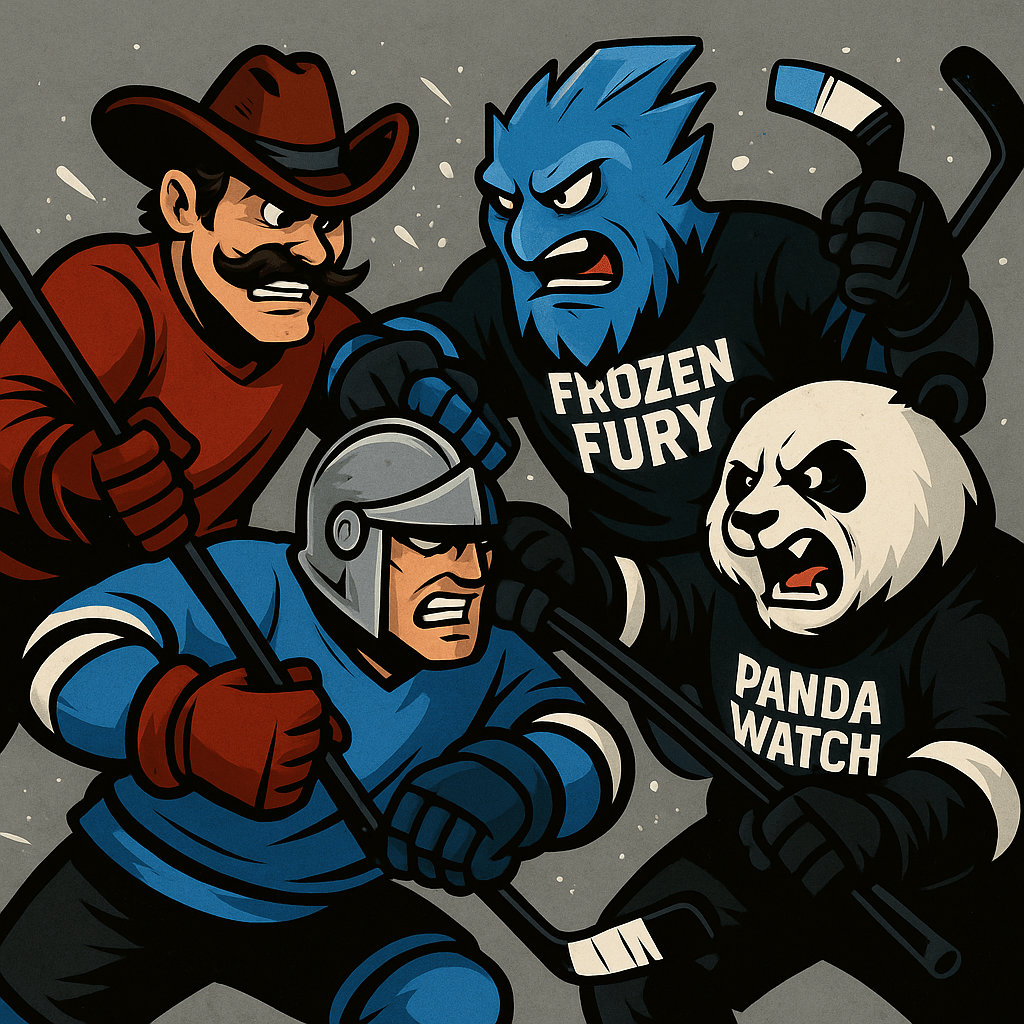 Panda Watch sits at 3-4-0-0, but their record doesn’t reflect the talent on the roster. Michael McChesney (18 pts in 9 games) continues to lead the offense, while Summer 2025 MVP Perry Holcombe, Chris Hamel, and Camron Williams provide reliable depth and two-way play. Jeff Paré has posted a strong .874 SV% in net. With good chemistry and solid attendance, Panda Watch is in a great position to surge late and challenge for a playoff upset.